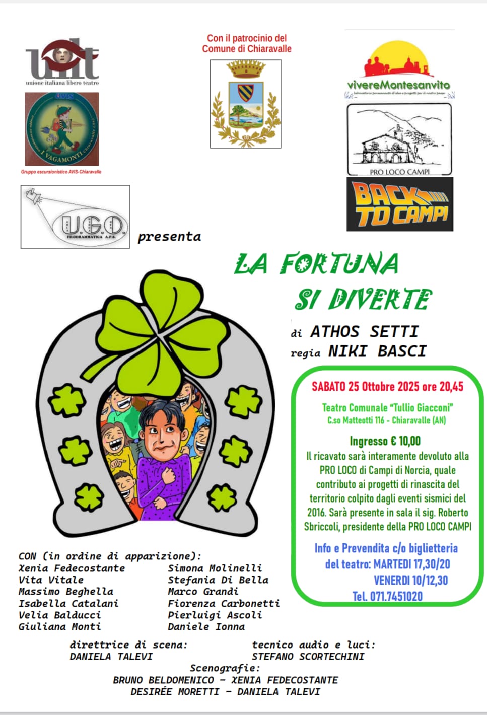 L’associazione “I Vagamonti” (gruppo escursionistico Avis di Chiaravalle) con il patrocinio del Comune di Chiaravalle organizza, in collaborazione con la compagnia filodrammatica U.G.O. APS , una serata di beneficenza/solidarietà per raccogliere fondi a favore delle comunità montane terremotate dei Sibillini.